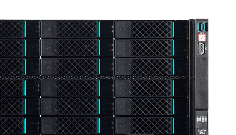 KunTai R524 存储型服务器是天辰娱乐数码基于鲲鹏处理器推出的新一代 ARM数据中心服务器。。。。主要面向存储业务,,,,具有海量存储、、、、高性能、、低功耗以及易扩展的特点,,,,适合为大数据分析、、、、软件定义存 储等应用场景的工作负载进行髙效加速。。。